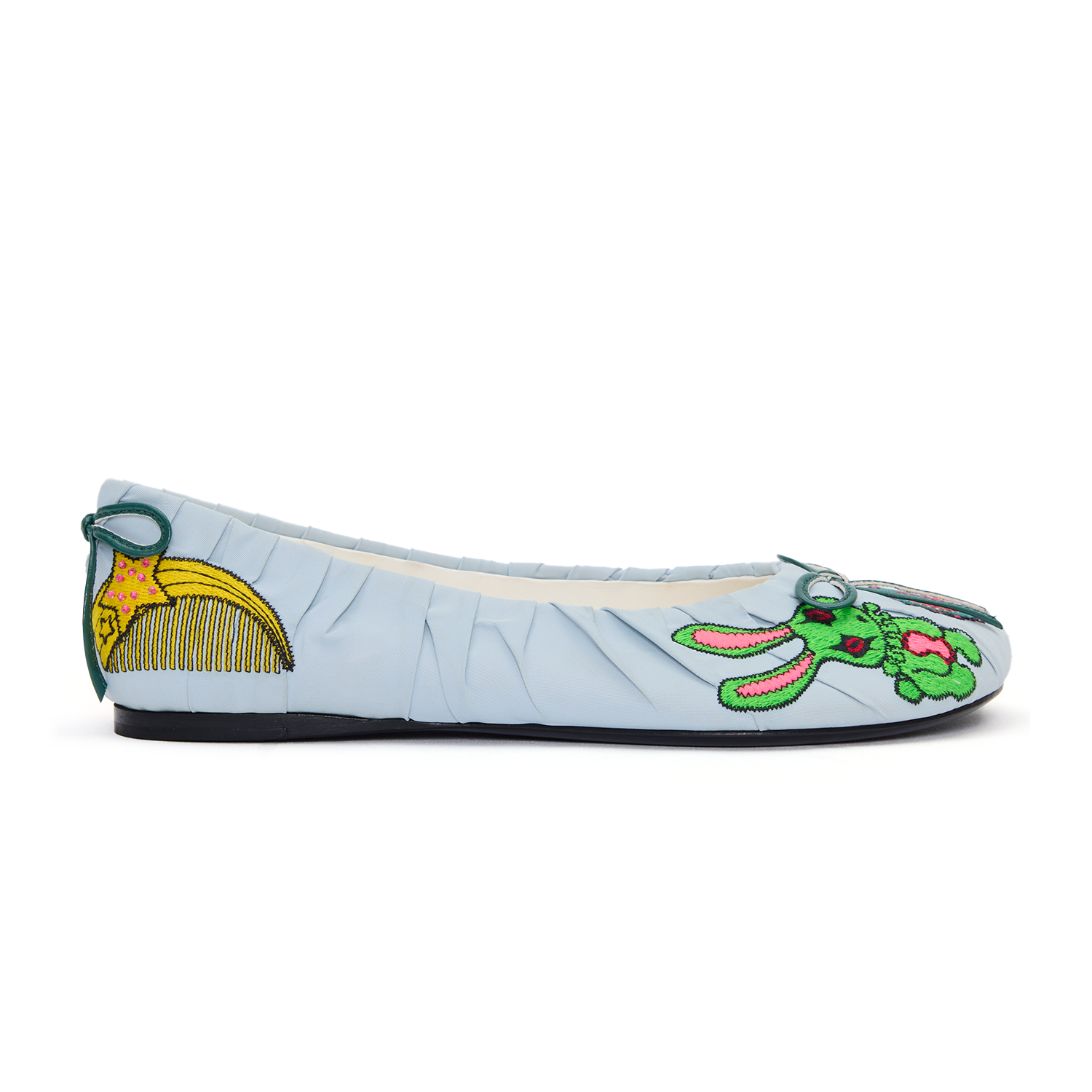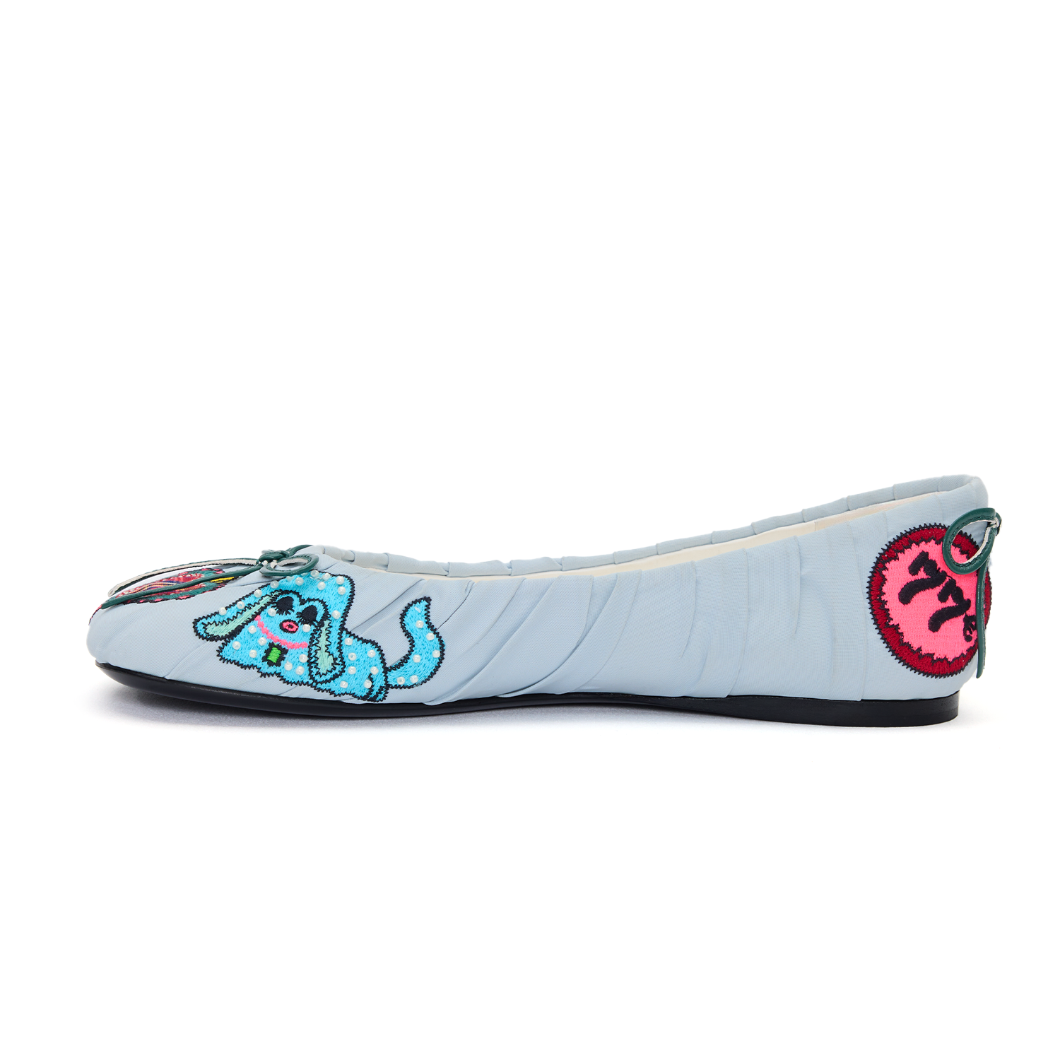 The upper part of the shoes is made of Japanese nylon fabric, while the sole is made of cowhide. It is decorated with embroidery patterns and there are leather bow knots on both the front and the back of the shoes.