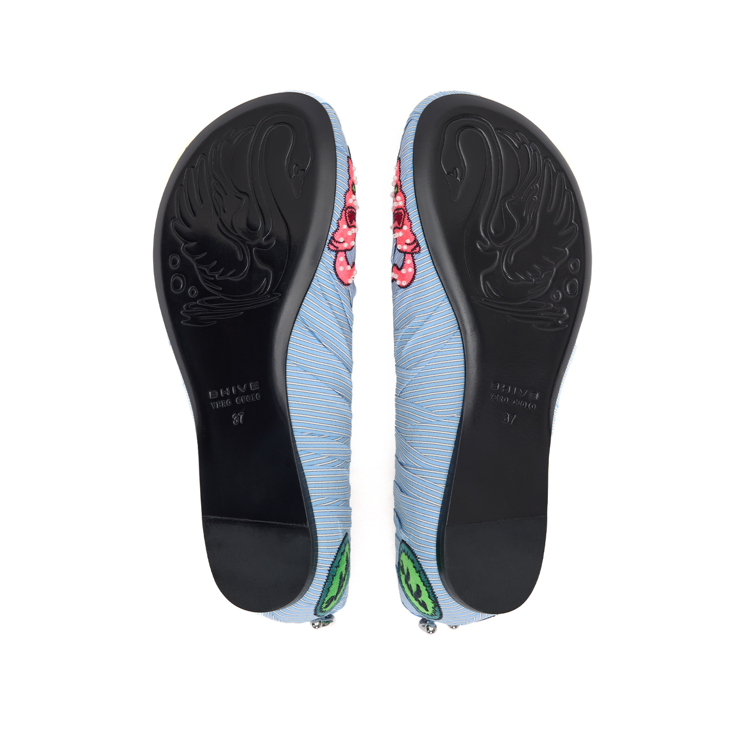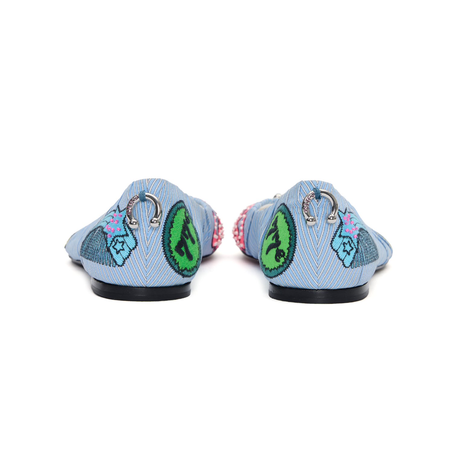 The upper of the shoes is made of Japanese blended fabric, while the sole is made of cowhide. with embroidered patterns. There are custom-made semi-circular rings at the front and back of the shoes.